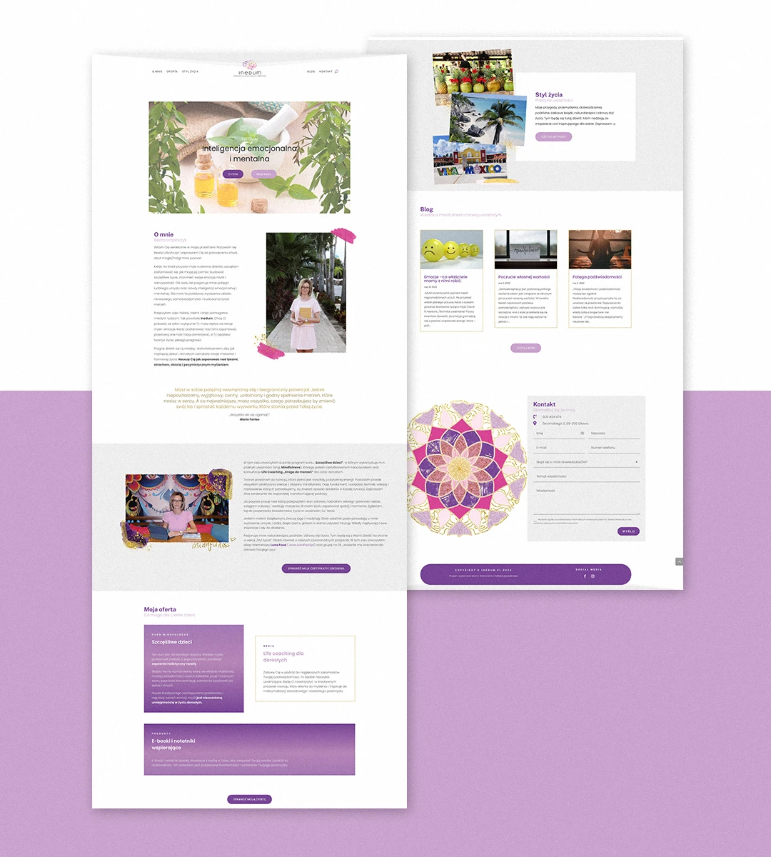 Tworząc stronę dla Inedum, zależało mi na tym, aby była nie tylko funkcjonalna, ale też oddawała wyjątkowy charakter marki – spokój, uważność i otwartość na rozwój. Inedum wspiera zarówno młodzież, jak i dorosłych w budowaniu pewności siebie oraz pracy z podświadomością, dlatego projekt musiał być jednocześnie inspirujący i przyjazny.